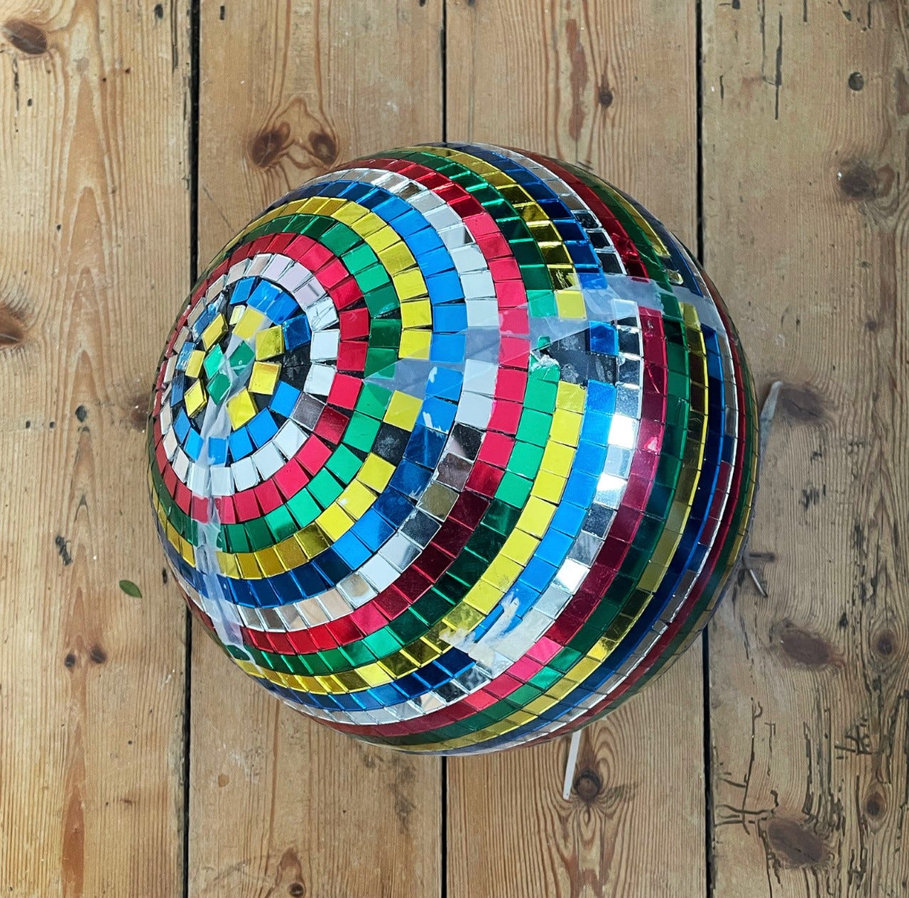 Down sloping streets of stones well-trod, I’d come across the disco ball several years before. In a little music shop in the centre of York, a city steeped in rich history of its own and mine, it hung lazily from the ceiling like a secret. I’ve owned a great many disco balls in my time and coveted many more — but this was not just any disco ball. With a mighty 40 inch circumference, here was an object that had lived, really lived; a rainbow riot of reflective glass, casting kaleidoscopes of colour across everything beneath it.